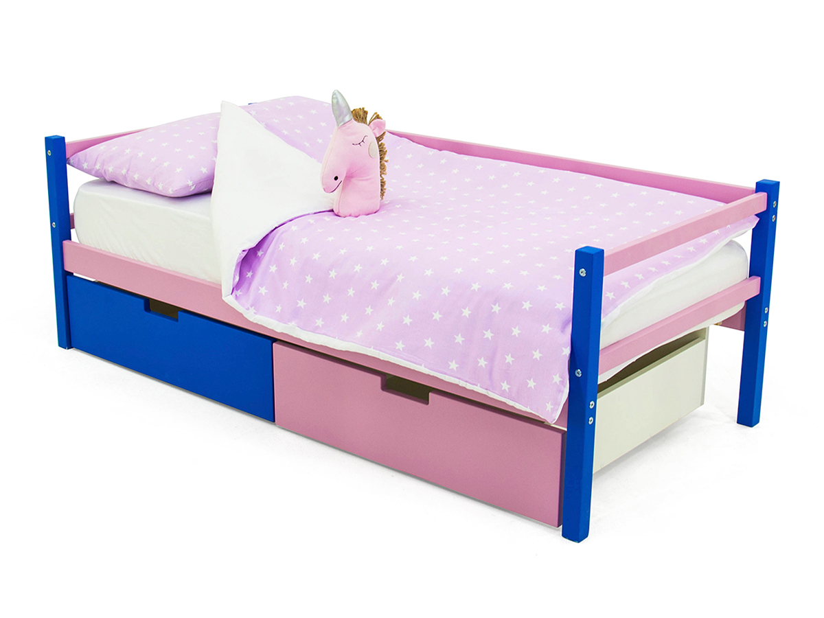 Кровать-тахта Svogen с ящиками синий-лаванда