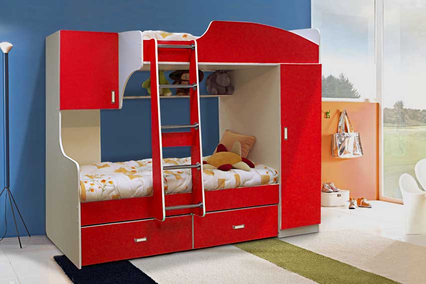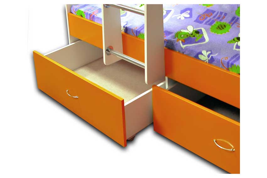 Модель оснащена вместительным шкафом с отделением со штангой и отделением с полками для одежды и вещей, а также ящиком для постельных принадлежностей.