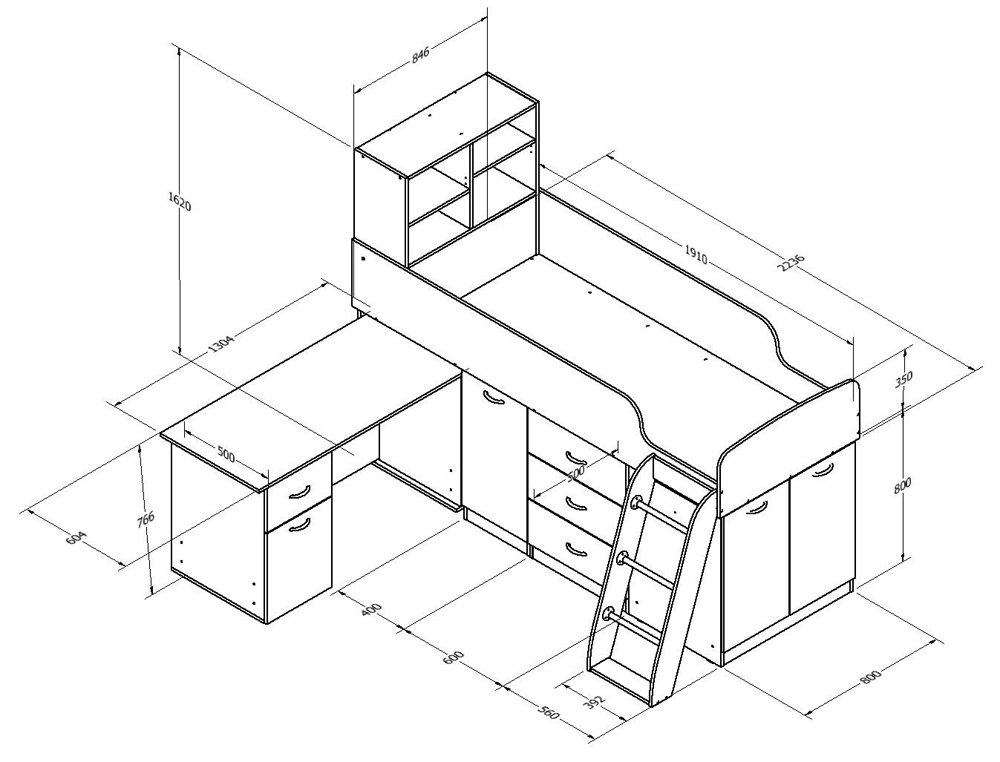- Кровать-чердак Дюймовочка-1 Мультицвет