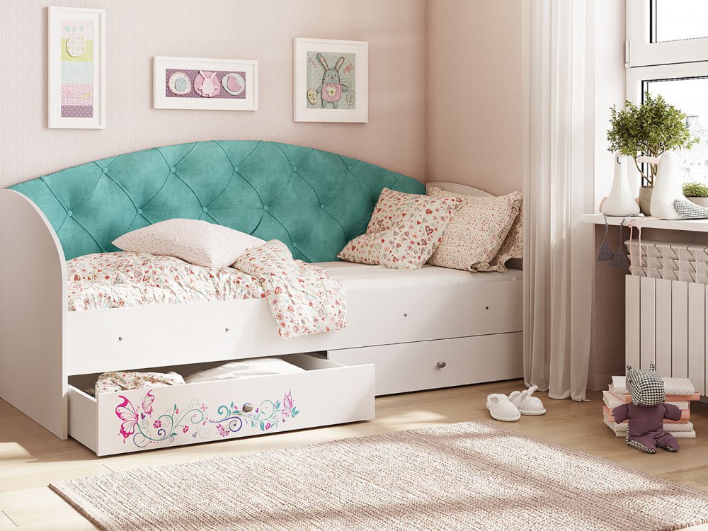 - Кровать Эльза Белый-бирюзовый