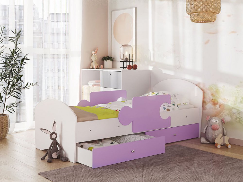 - Кровать Мозаика с бортиками и ящиком белый-ирис