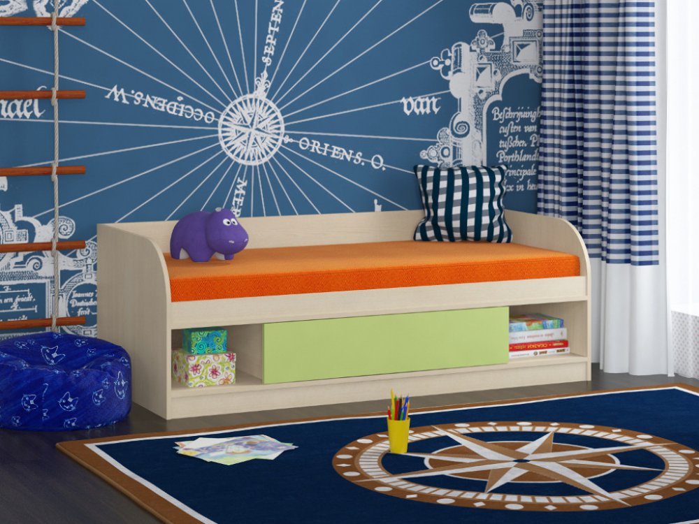- Кровать Соня 4 дуб молочный-салатовый