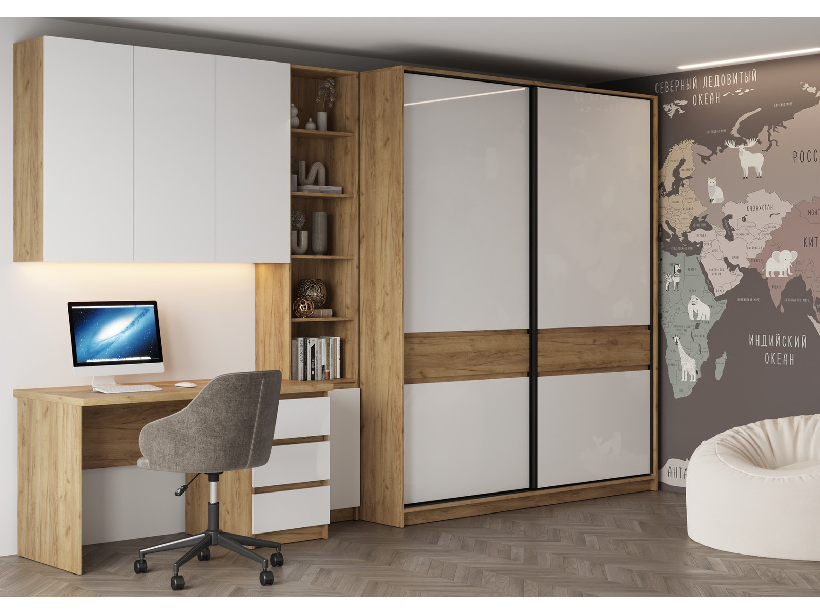 - Рабочая зона Бостон МДФ белый