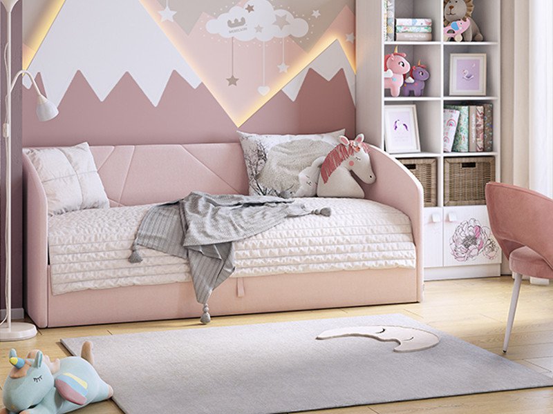 Основание подъемное входит в комплект кровати, петелька для подъема в цвет ткани на корпусе. Кровать имеет огромный ящик для хранения.