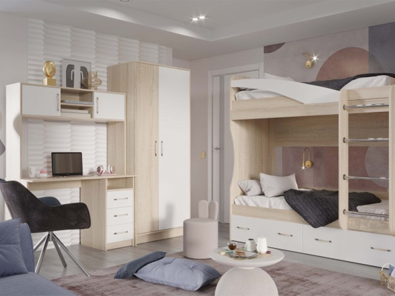 Стол с ящиками Буратино сонома/белый