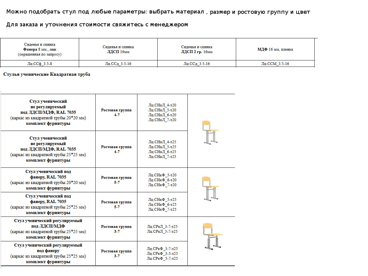 - Стул ученический Лц.СР 3/4/5- т25 регулируемый Лицей