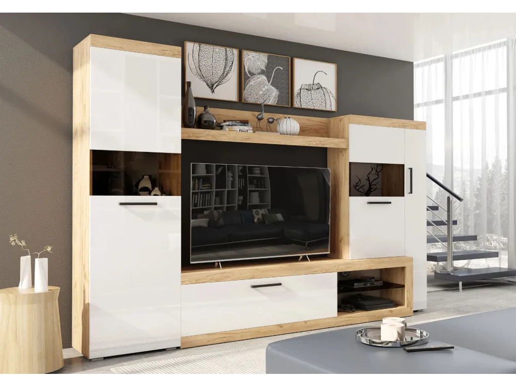 - Гостиная Бастон Дуб Вотан-Белый глянец