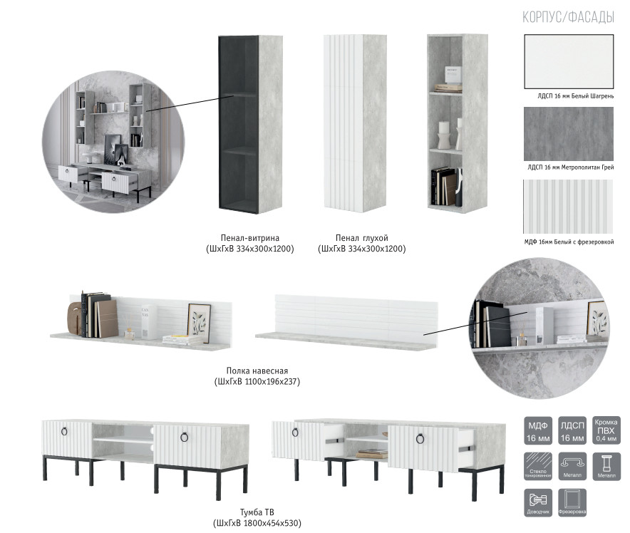 Цвет: ЛДСП Метрополитан Грей/МДФ Белый