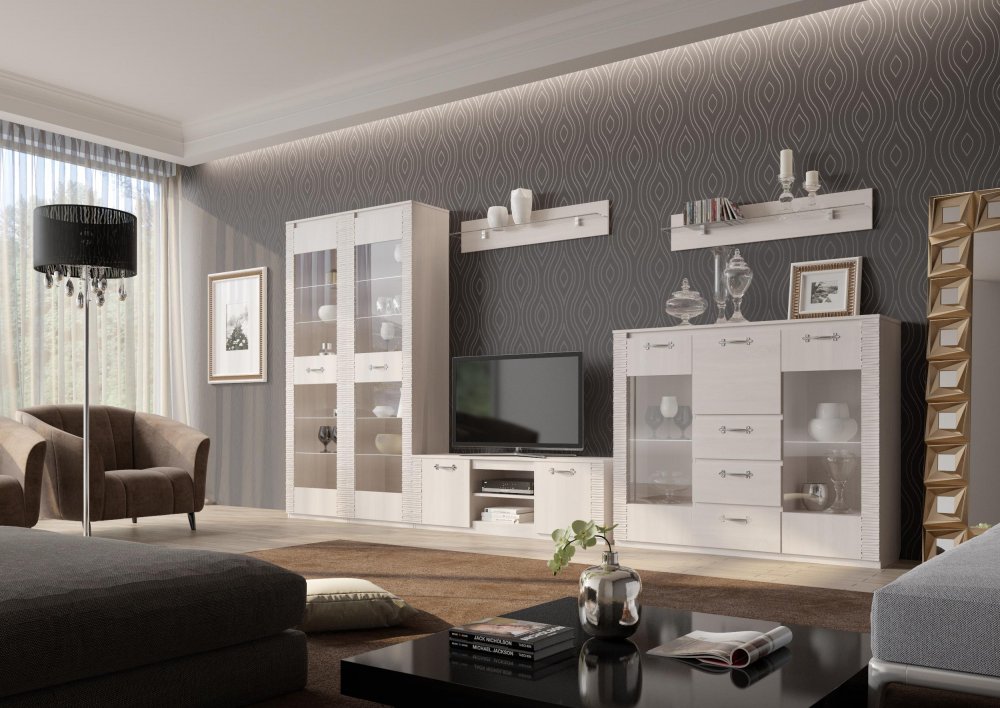 Гостиная модульная, все элементы можно приобрести отдельно. Цена указана за комплектацию на главном фото - полка - 2 шт, Комод с баром, Витрина 2 шт, Тумба ТВ