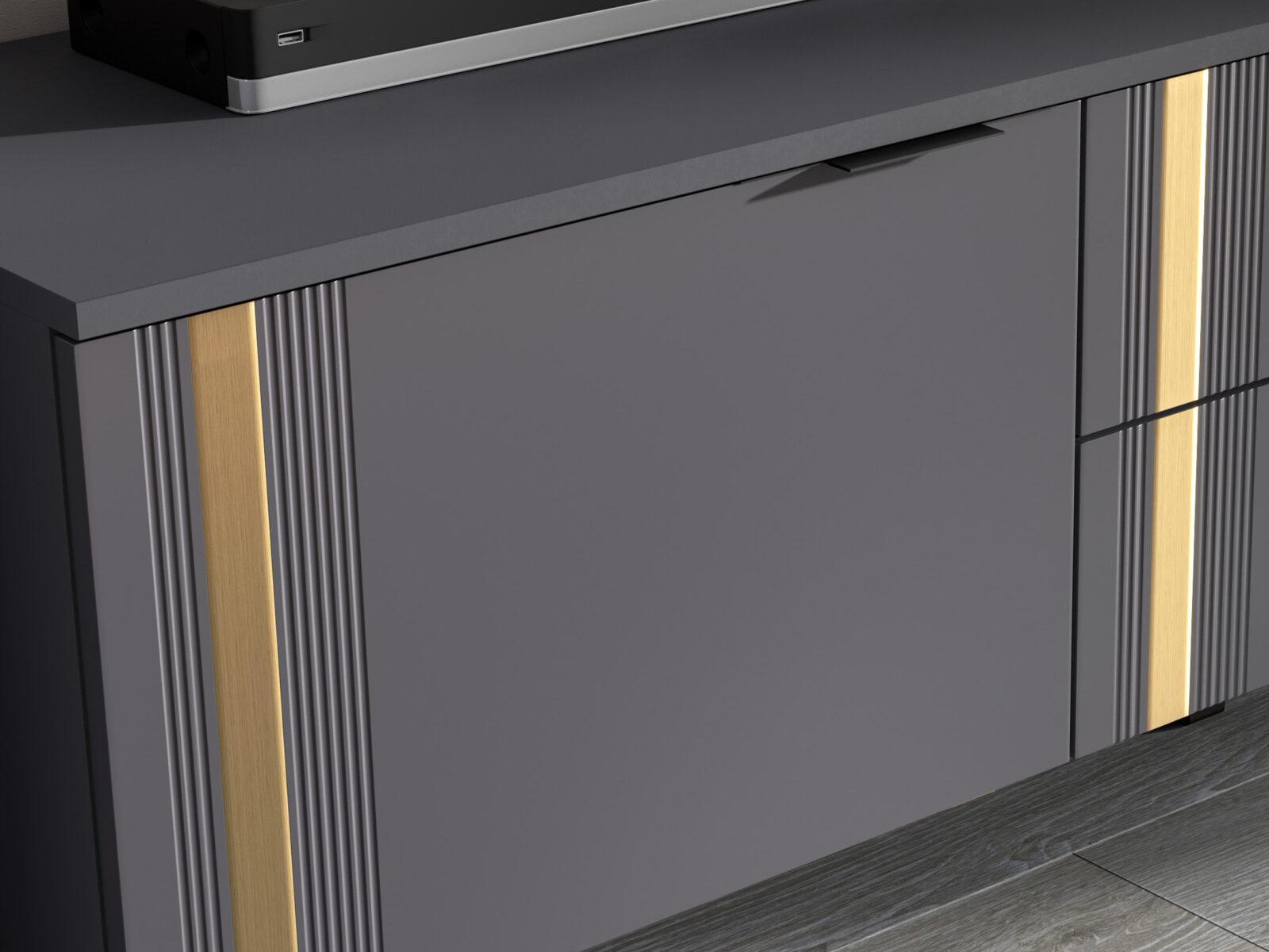 - Фасады МДФ украшены декоративной металлической лентой в цвете "Золото браш".