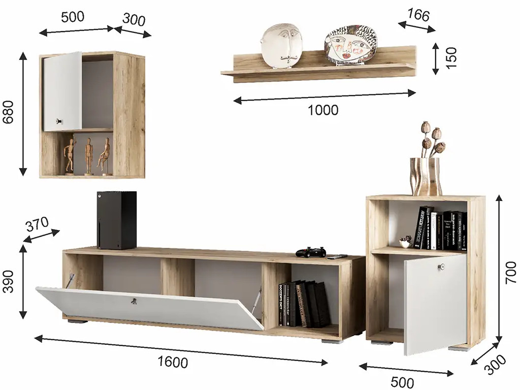 ПЛ-1000 Полка, ТБ-1600 Тумба, ТБ-500 Тумба навесная/напольная (2 шт)