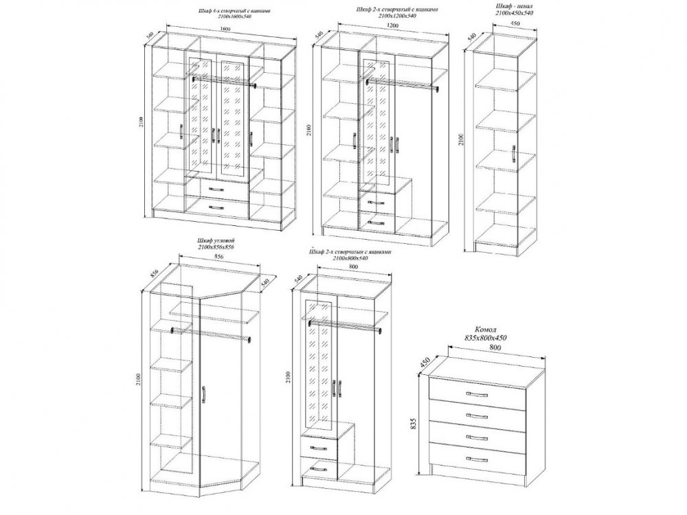 Цена указана за комплект на главном фото: Шкаф четырехстворчатый, Шкаф угловой, Пенал