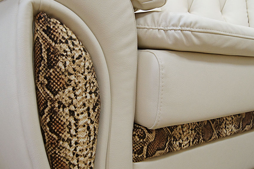 Эта модель подойдет как для элитного офиса, так и для дома. Особую мягкость, подлокотникам и подушкам спинки придает их наполнение - синтетический пух. Валики и мягкие подушки сидений съемные.