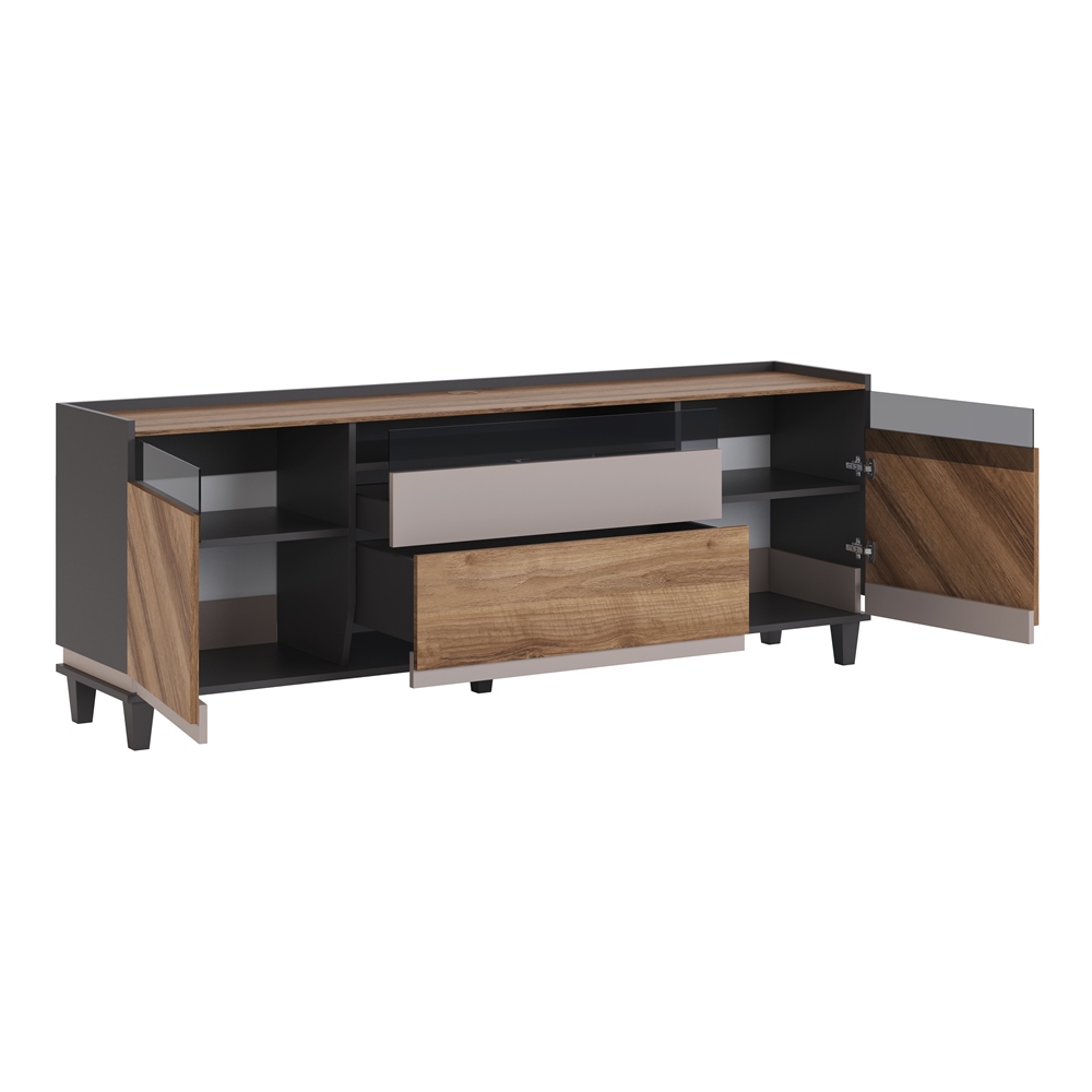 Дверцы декорированы тонированным стеклом, ножки из массива дерева