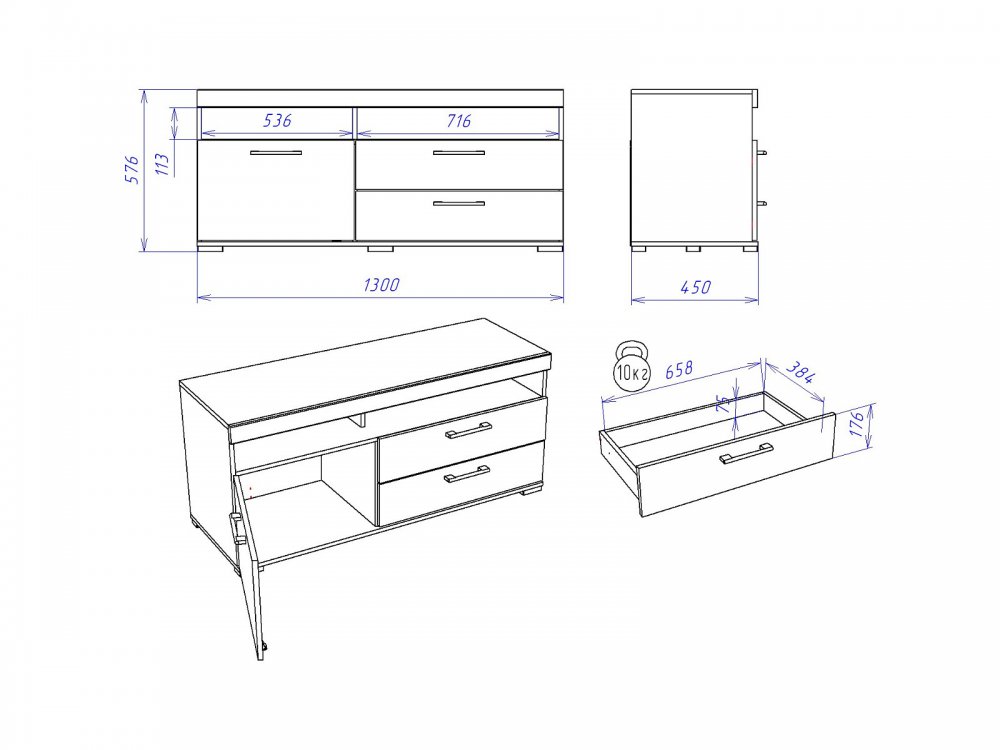 - Тумба Д-4 под ТВ Денвер Риббек серый