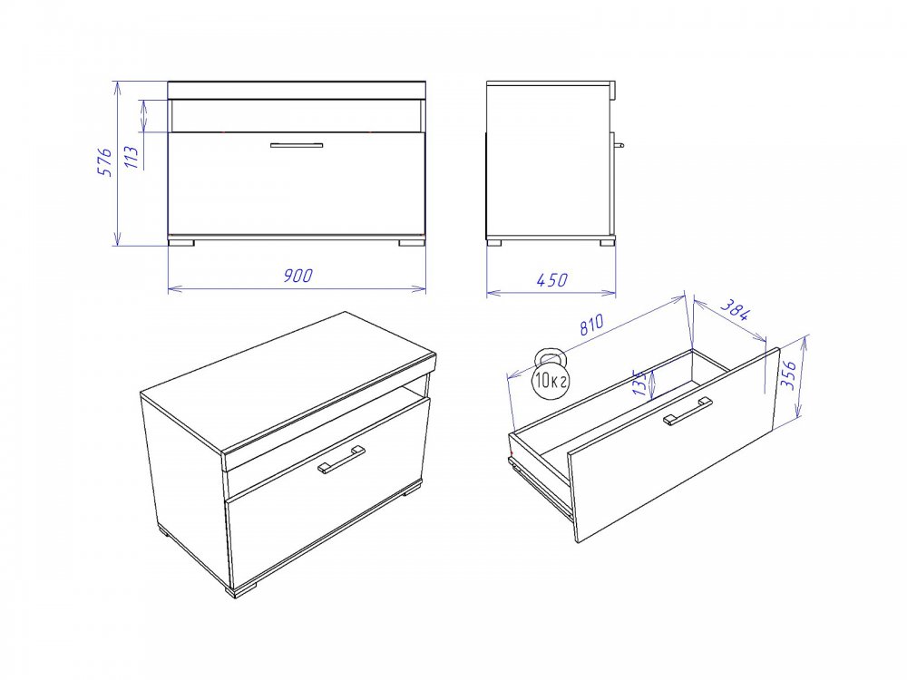 Размер ШхГхВ: 900*450*576 мм