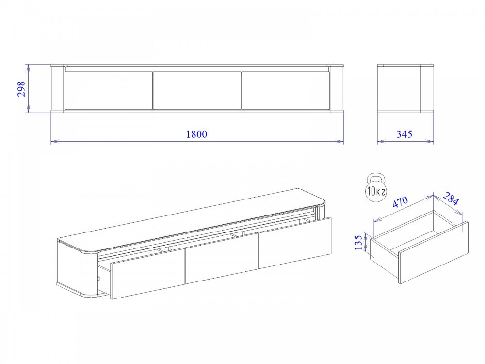 Наполнение тумбы - 3 выдвижных ящика с доводчиками. Шариковые направляющие надежно удерживают ящики при открывании.