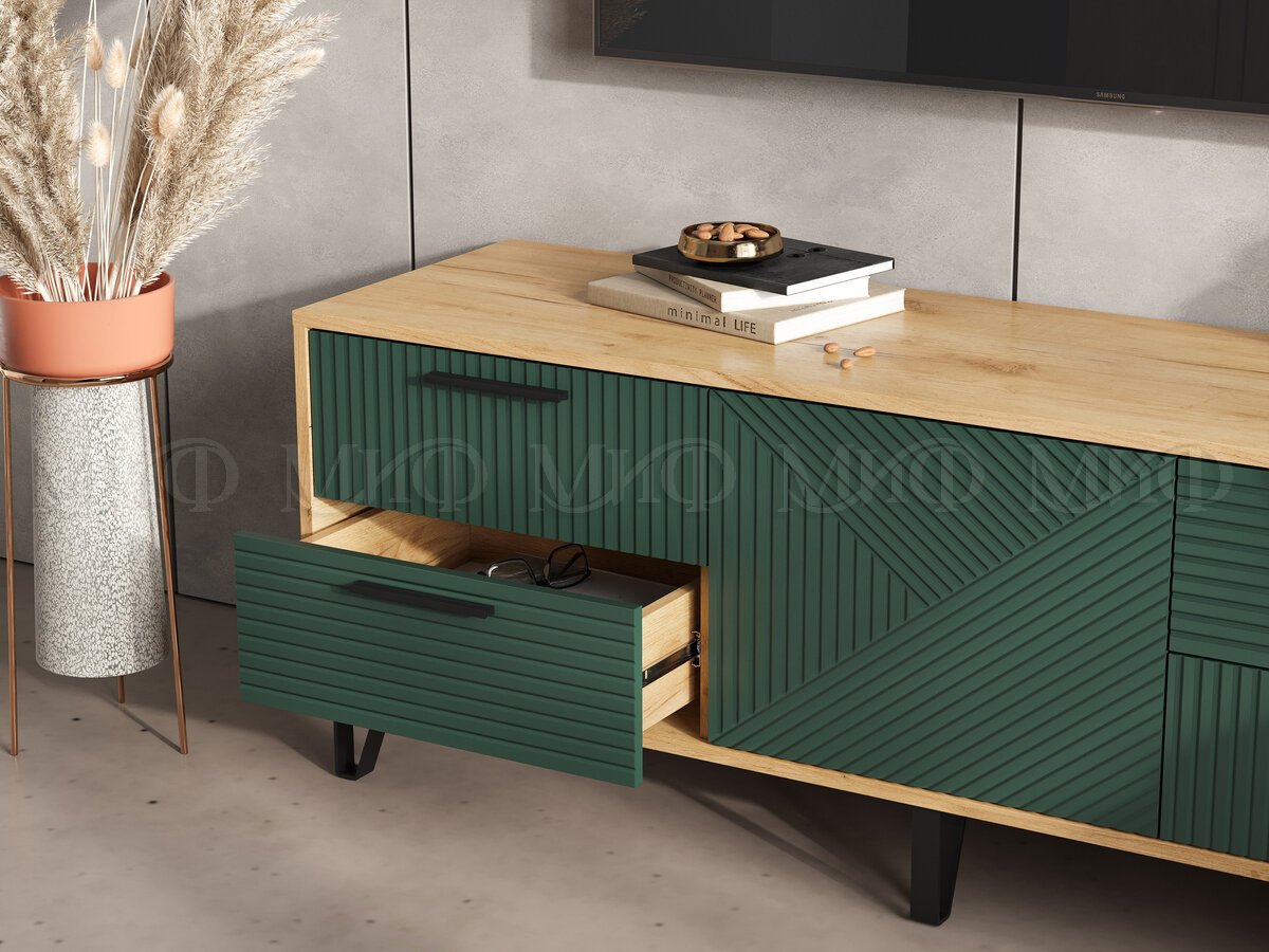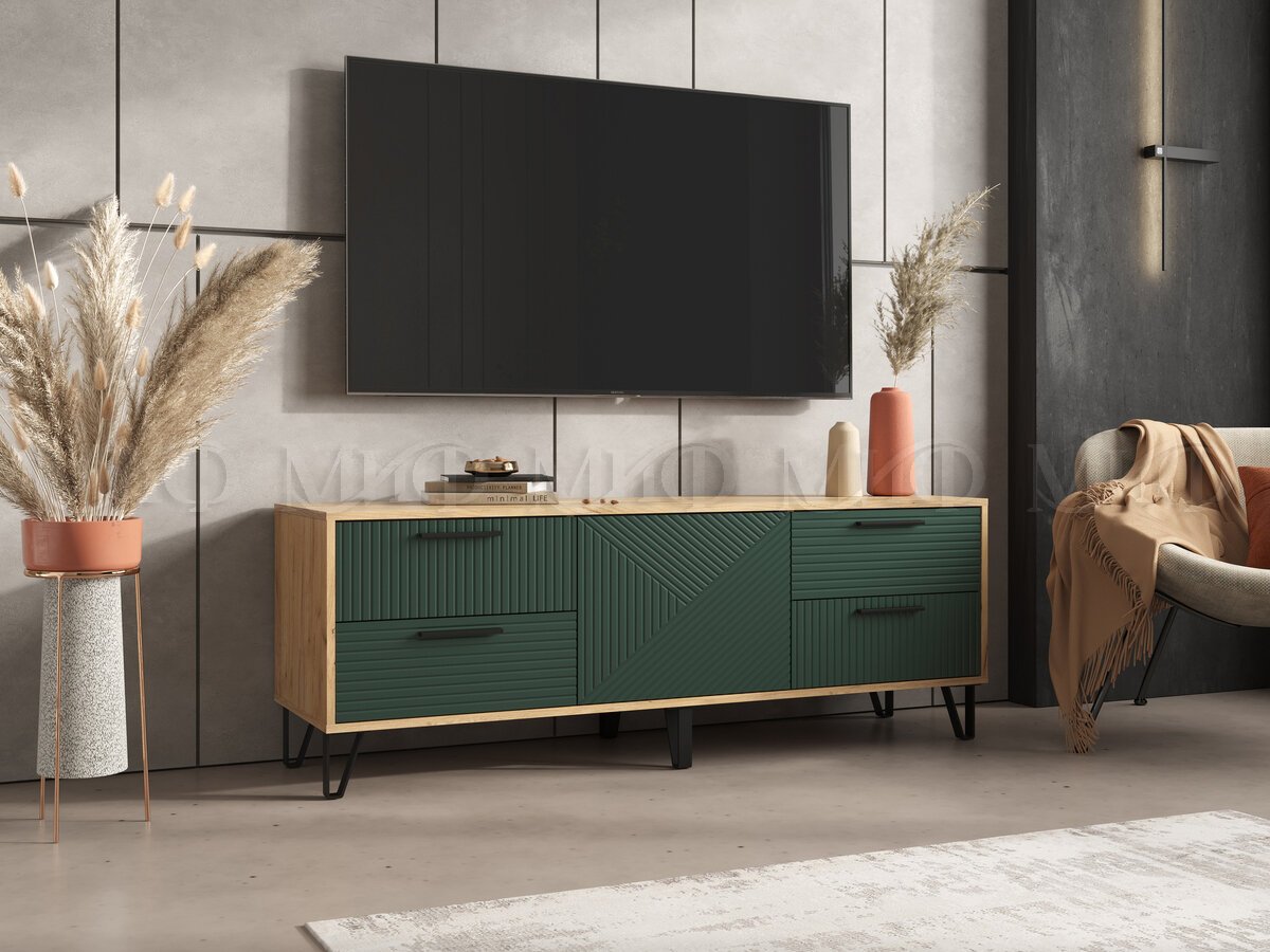 - Тумба ТВ (1500) Флэш Браш Мени Грин, Дуб Крафт
