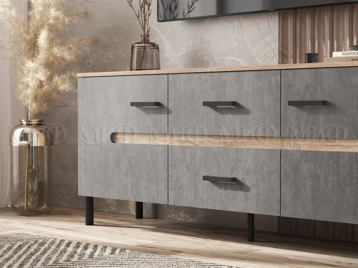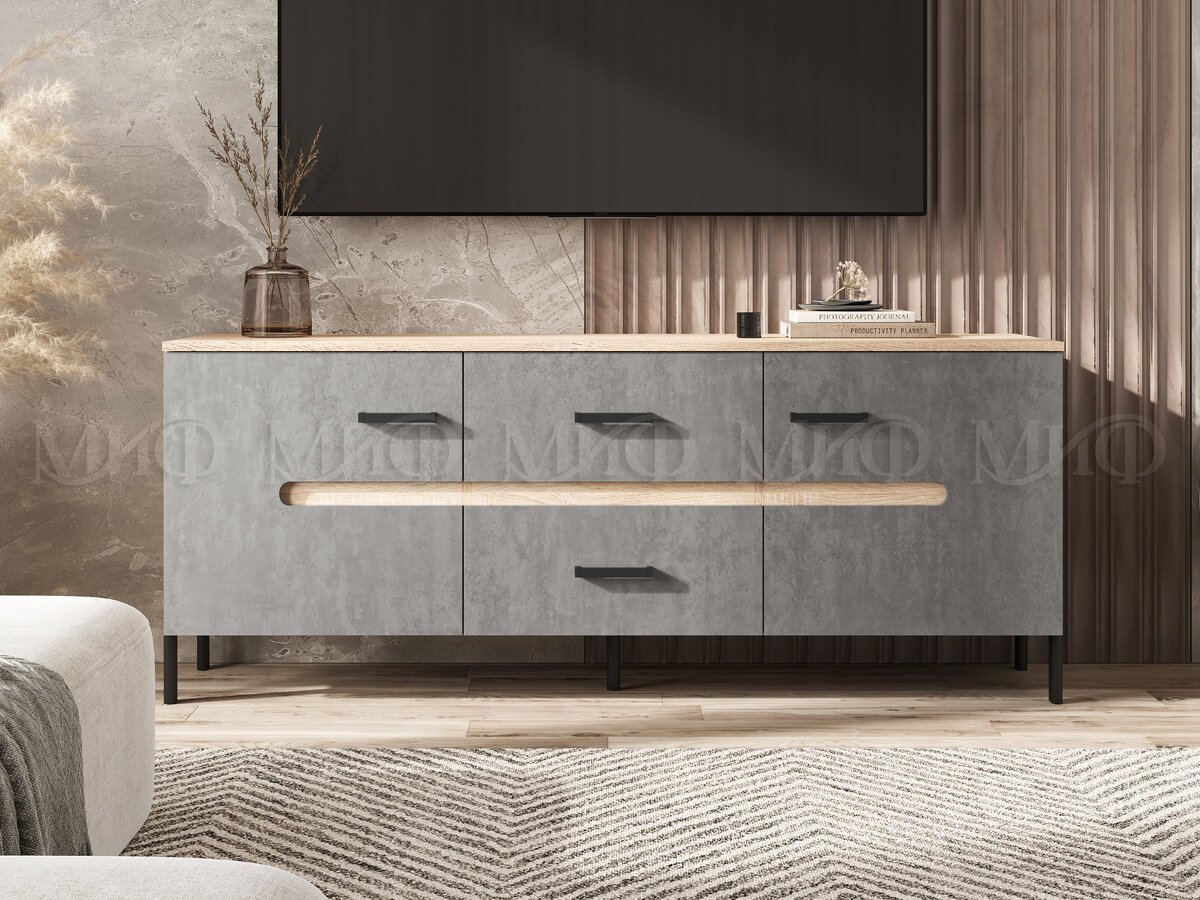 - Тумба ТВ (металл) Ким Бетон Темный, Дуб Сонома