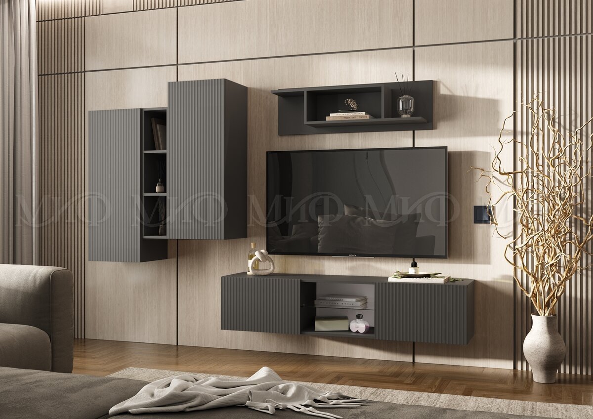 - Тумба ТВ подвесная 1500 Оскар Графит Софт