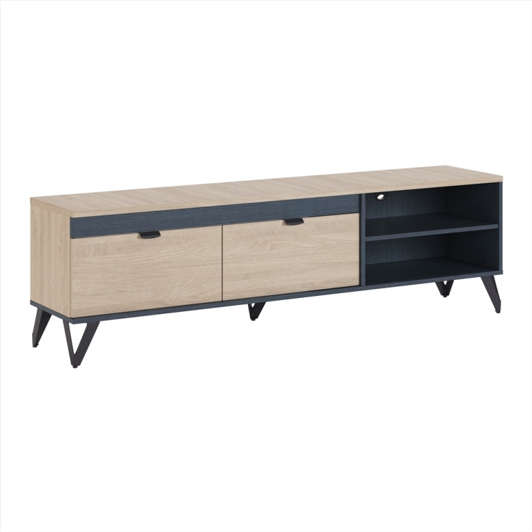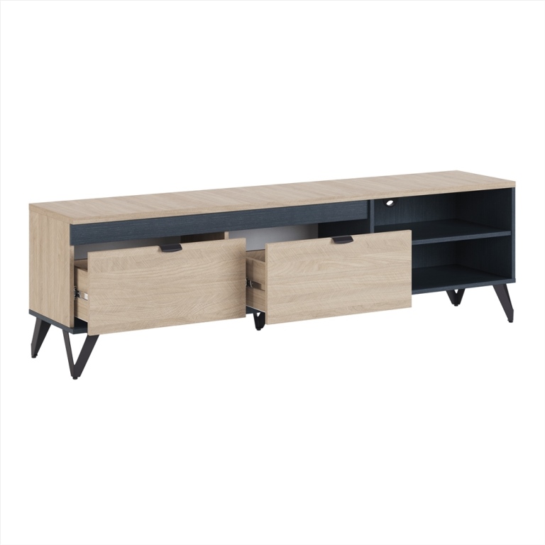 Односторонняя сборка. Толщина ЛДСП 16 мм. Ручки накладные (торцевые), также как и опоры изготовлены из металла, окрашенного полимерной антисколовой красной черного цвета. Тумба имеет два выдвижных ящика на шариковых направляющих полного выдвижения и открытую нишу с полкой из ЛДСП.