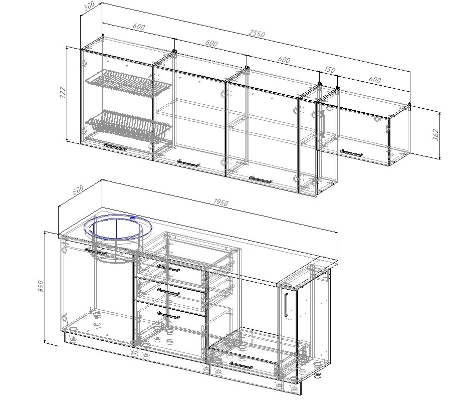 Гарнитур кухонный Антрацит-2550