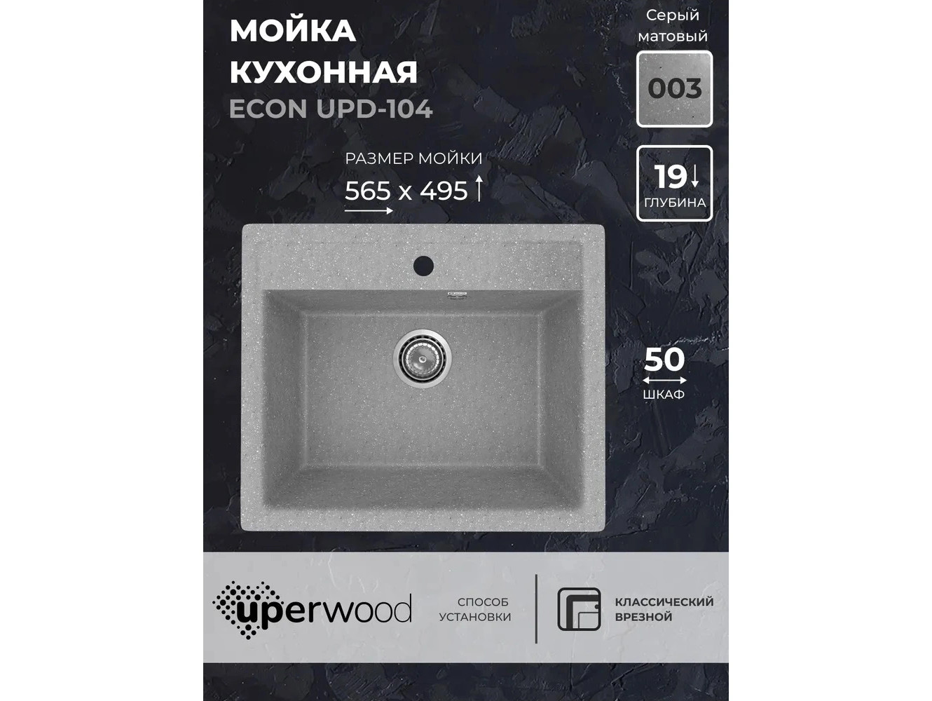 Кухонная мойка Uperwood ECON UPD-104-003 серая матовая