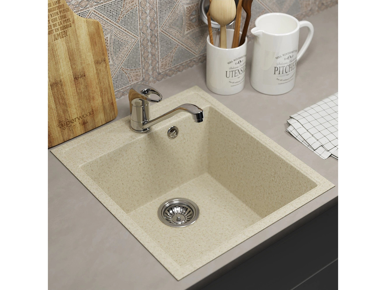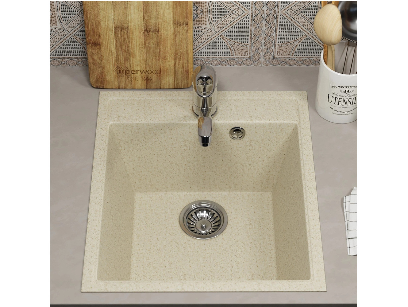 - Кухонная мойка Uperwood ECON UPD-404-002 бежевая матовая