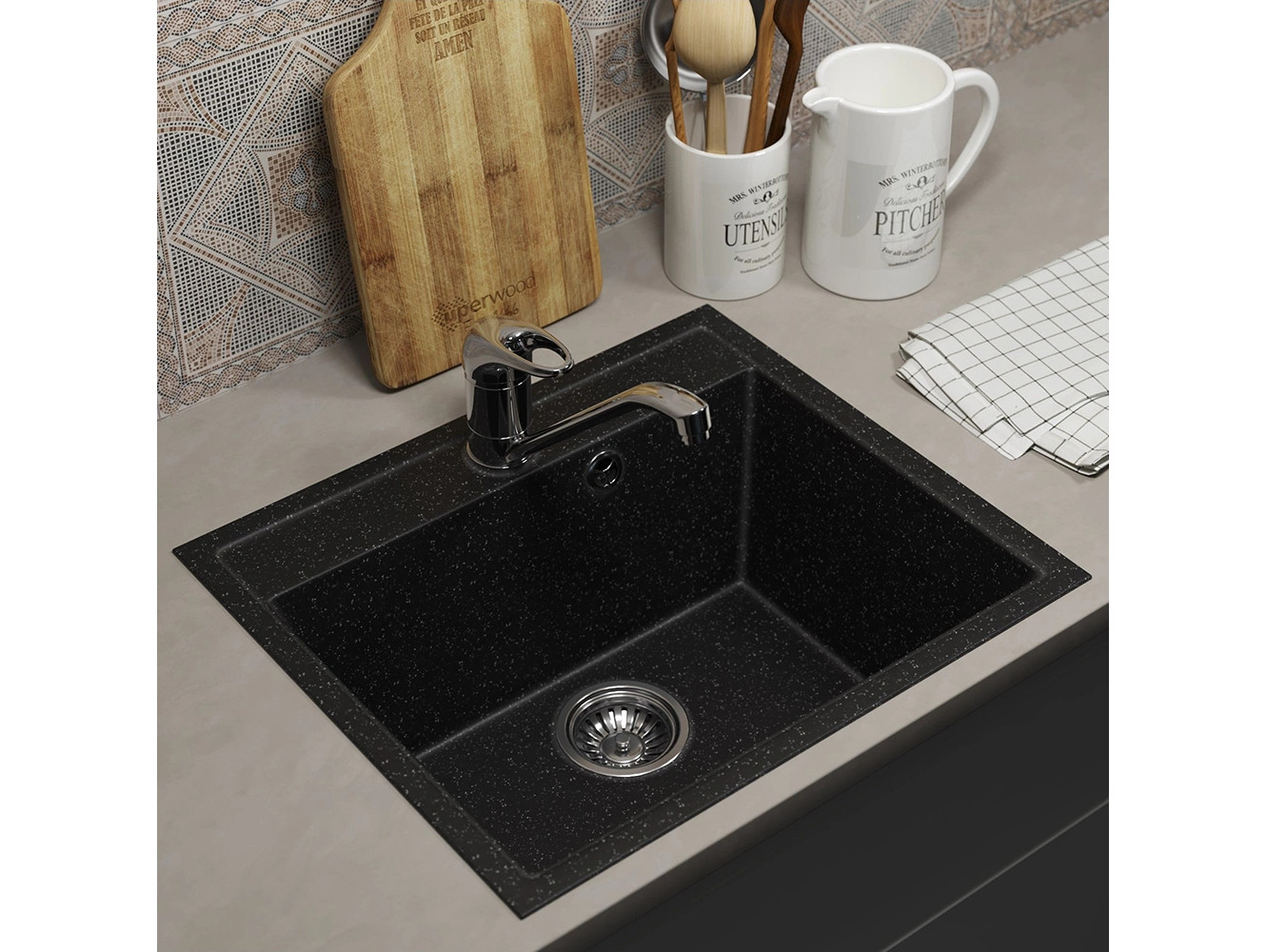 - Кухонная мойка Uperwood ECON UPD-408-004 черная матовая