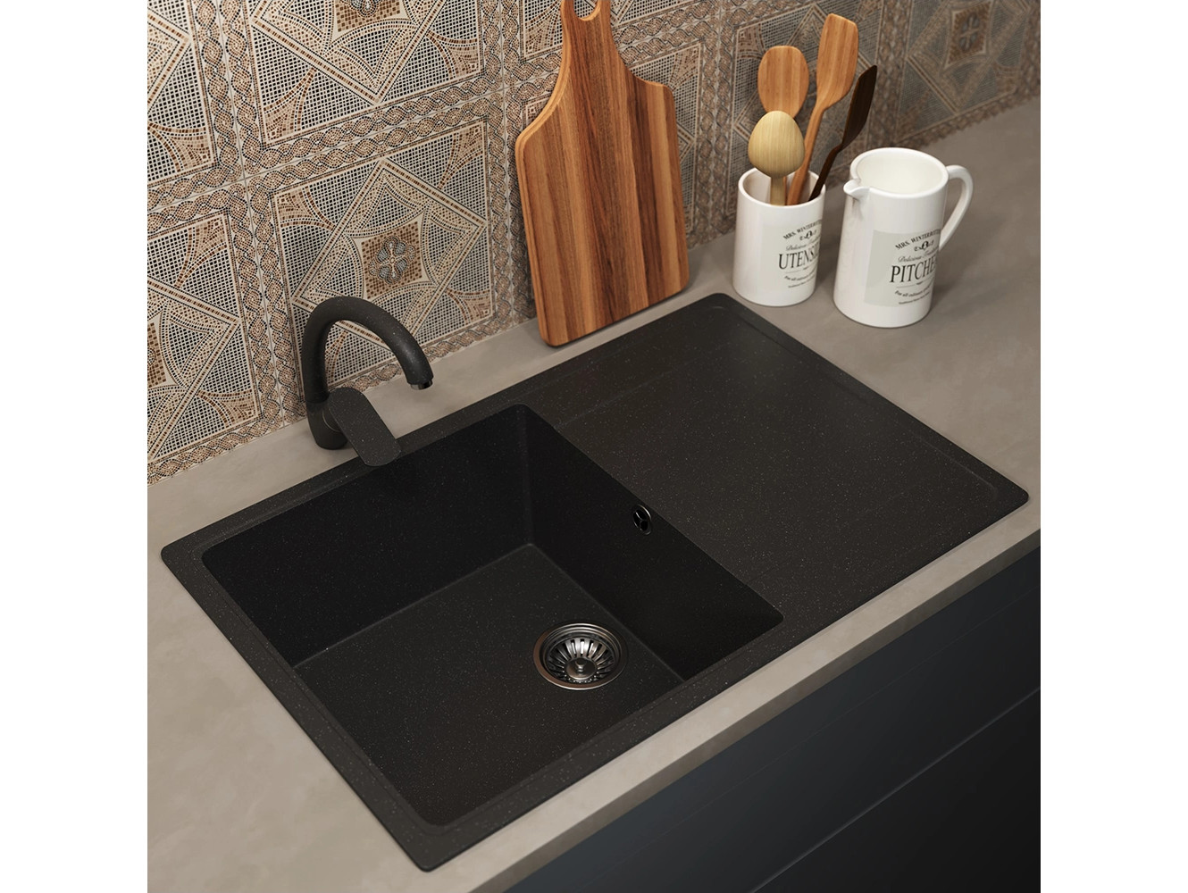 - Кухонная мойка Uperwood ECON UPD-507-004 черная матовая