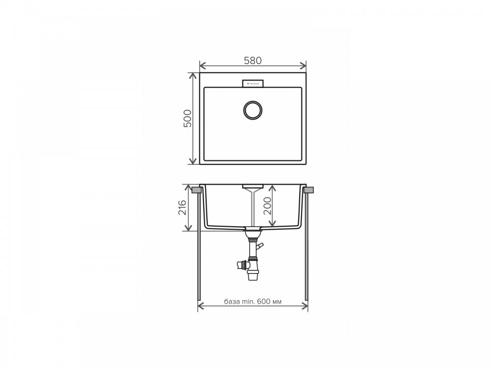 Минимальный размер тумбы под мойку, мм: 60