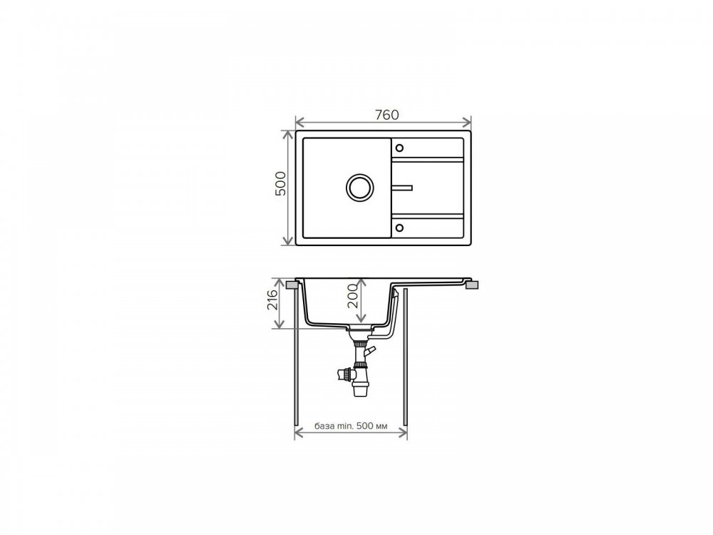 Длина мойки, мм: 760
