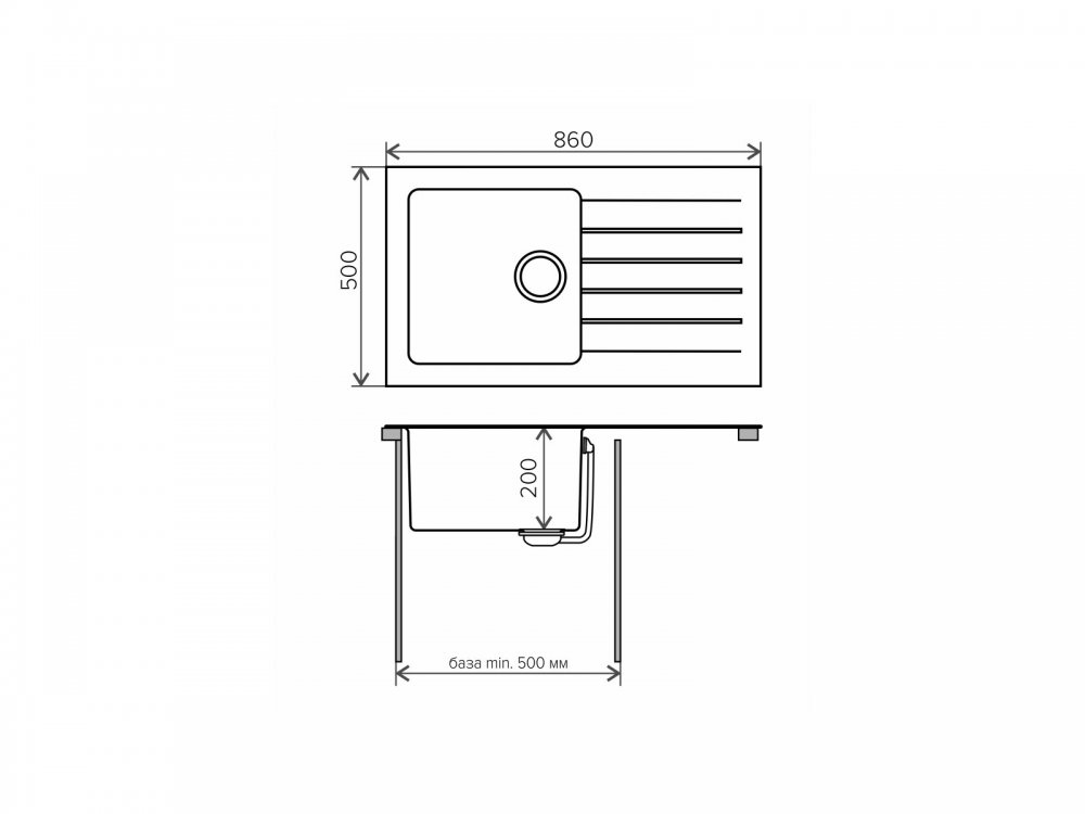 Длина мойки, мм: 860