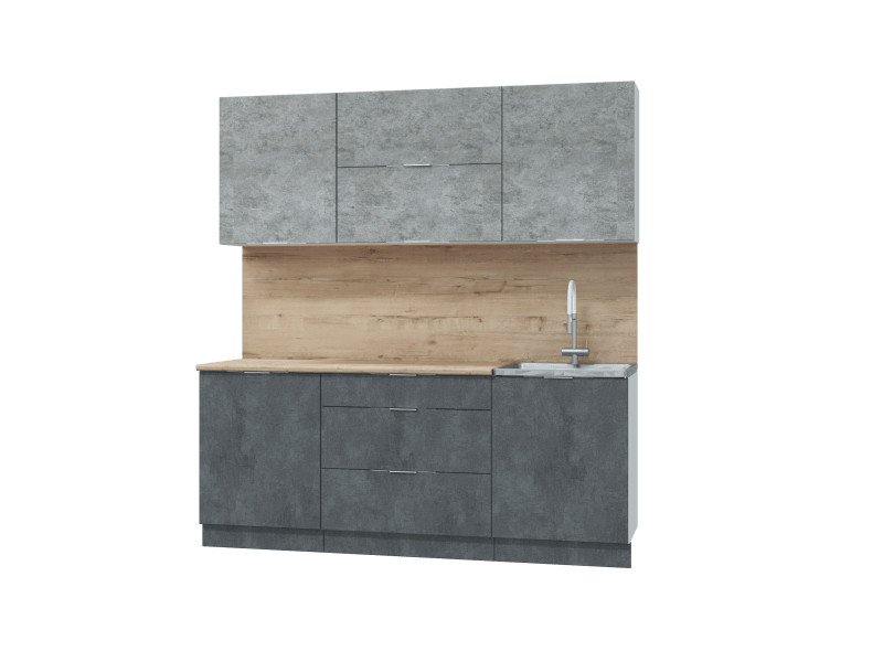 - Фасад: МДФ + пленка ПВХ (шкафы настенные - "Бетон светлый", шкаф-столы кухонные - "Бетон темный"