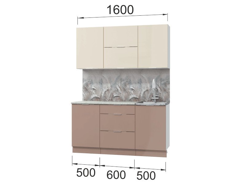 - Фасад: МДФ + пленка ПВХ (шкафы настенные - "Ваниль глянец", шкаф-столы кухонные - "Кофе с молоком глянец"
