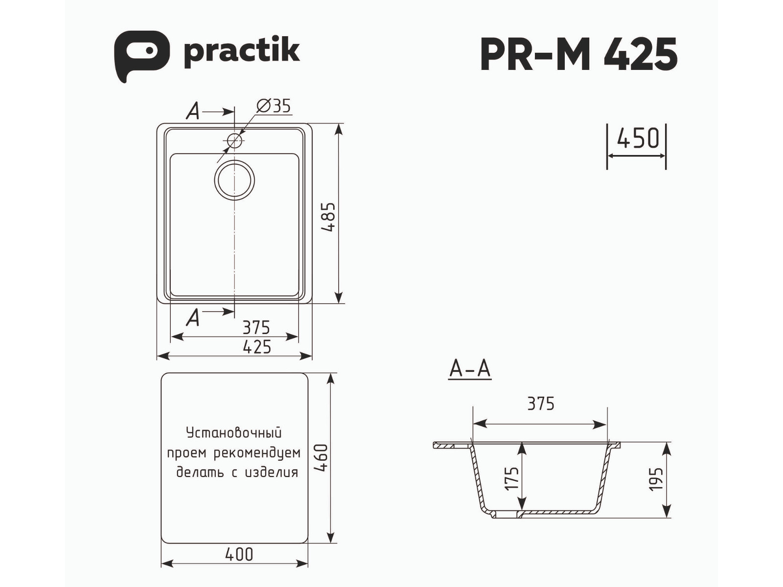 - Мойка Practik PR-M 425-004 черный оникс