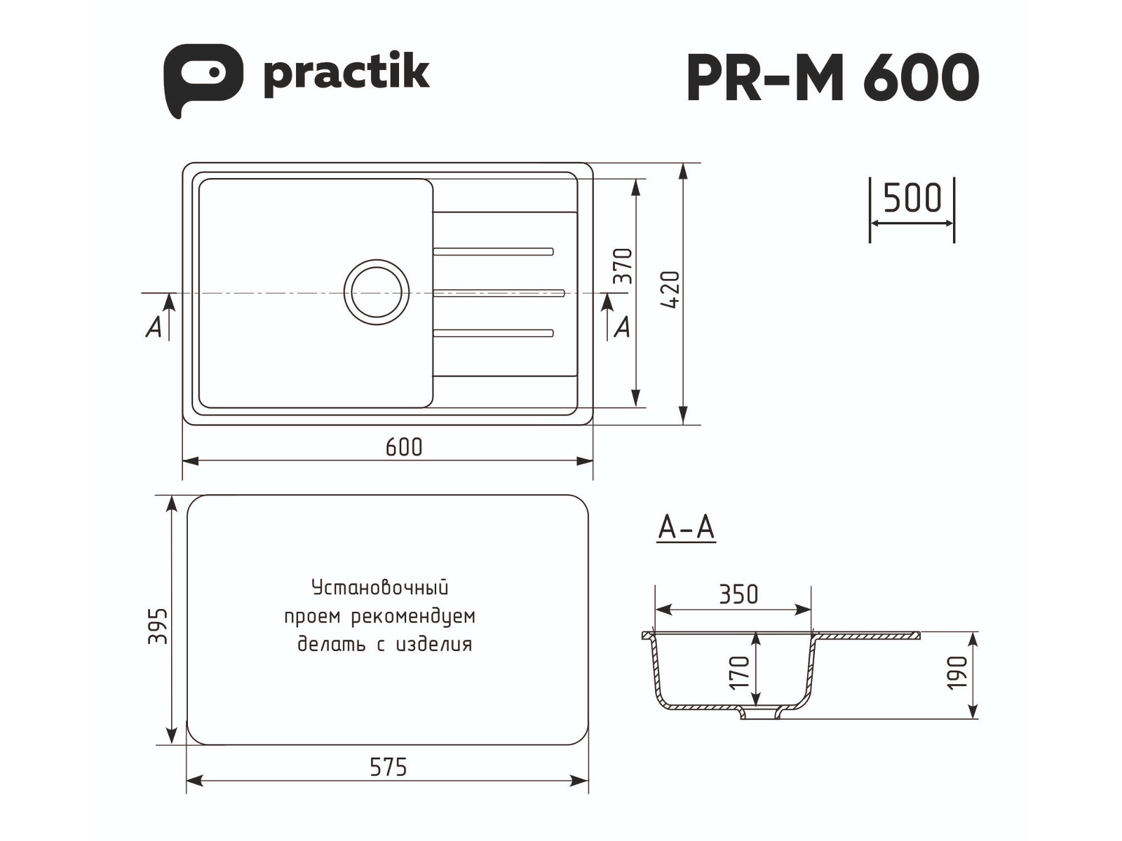 - Мойка Practik PR-M 600-001 белый камень