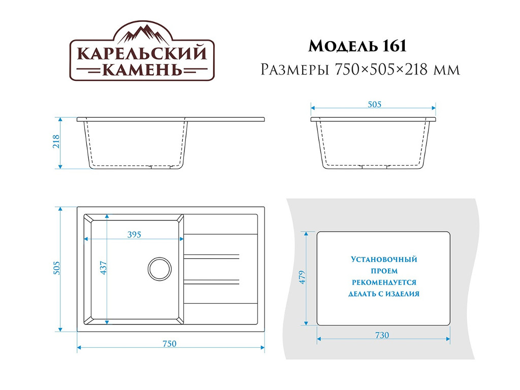 - Мойка врезная Карельский камень модель 161 Черный
