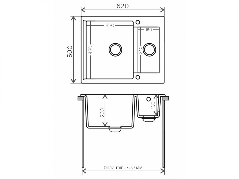 Минимальный размер тумбы под мойку, мм: 700