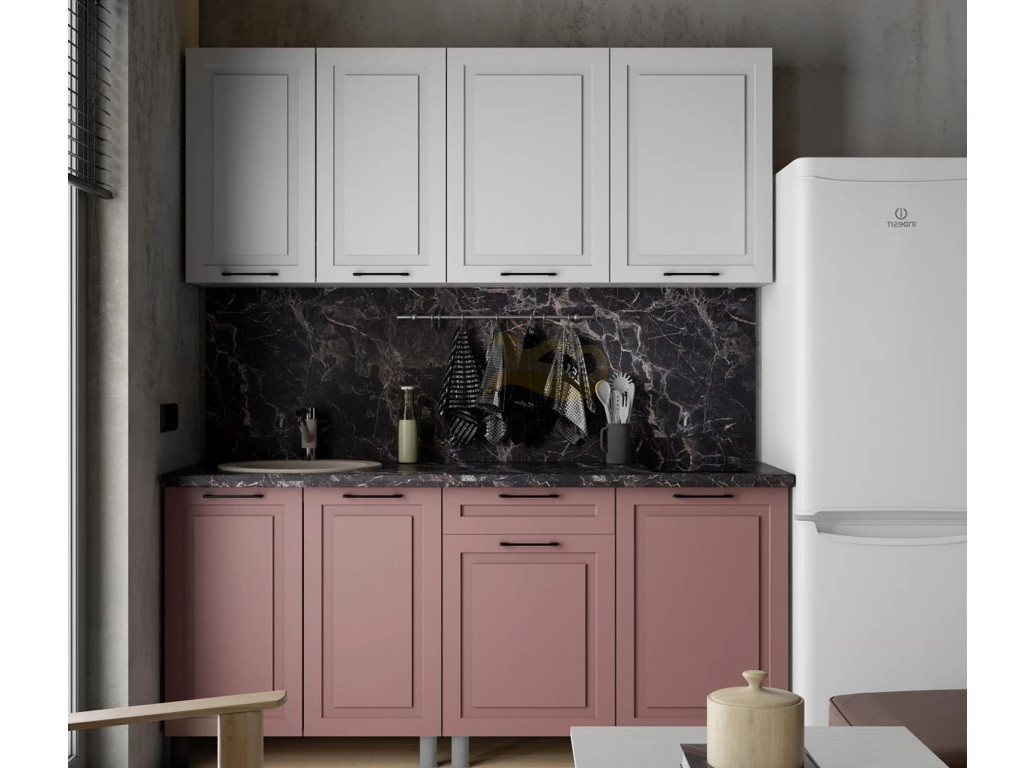 - Кухня Аликанте 1800 МДФ Белый снег/пудра без столешницы
