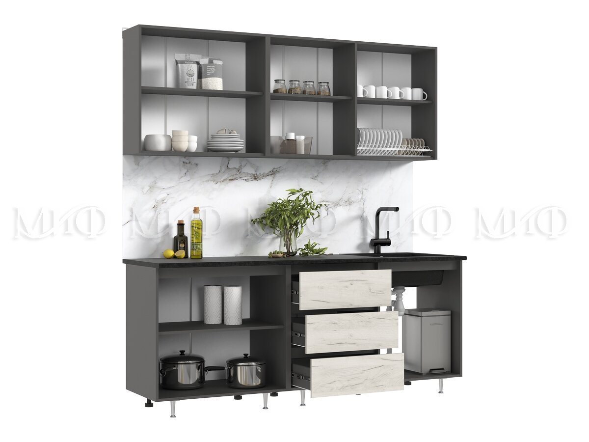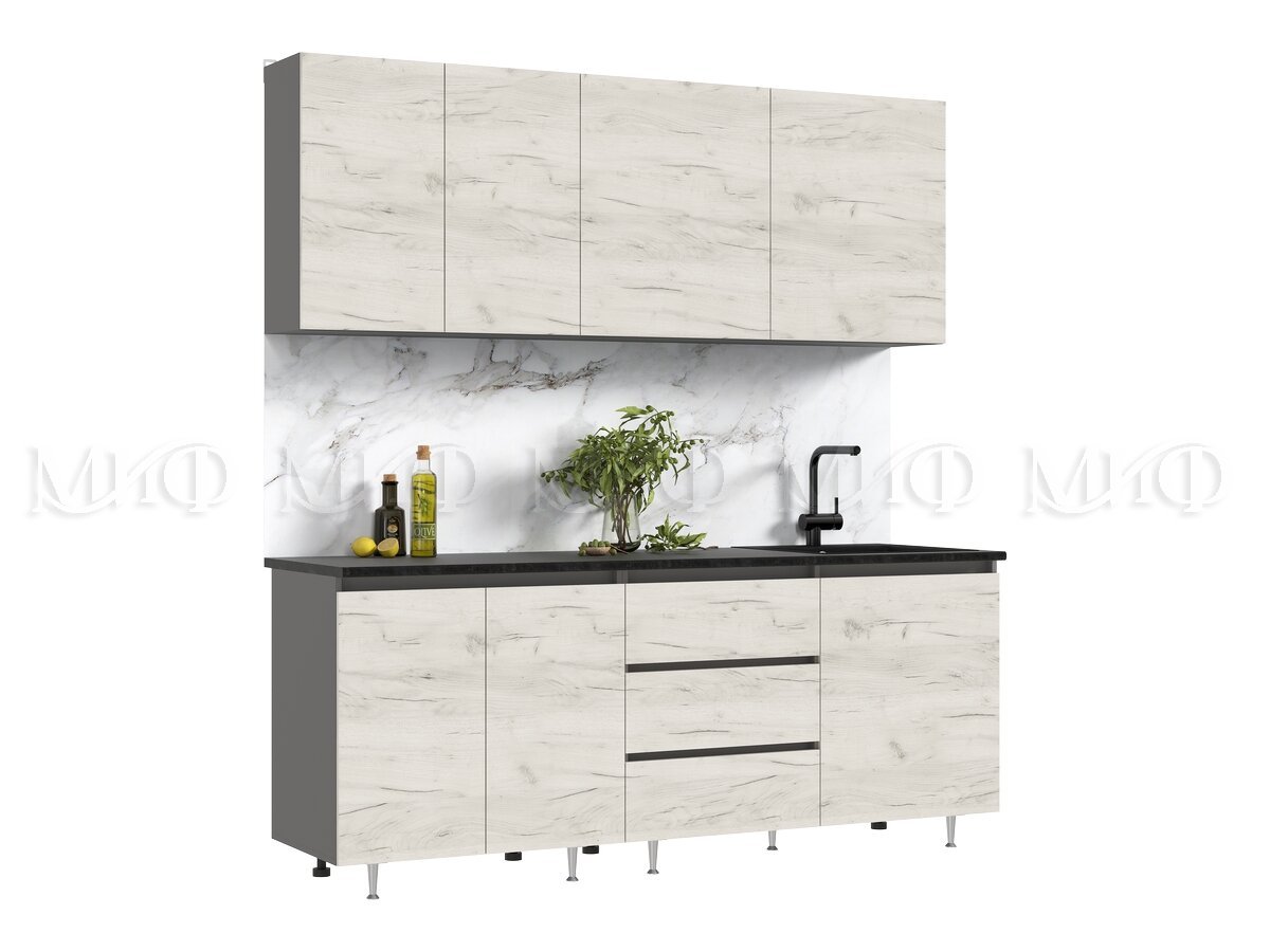 - Кухня Челси 2000 мм Компановка №2 Дуб крафт Белый, Графит (Кастилло)