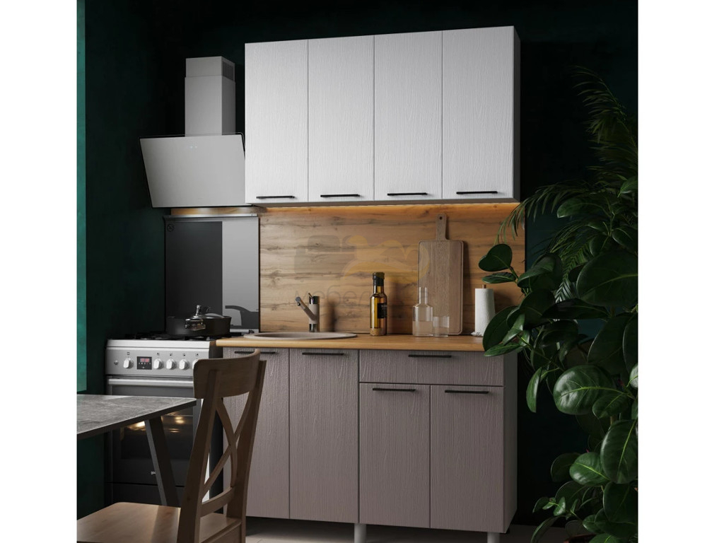 - Кухня Хилтон 1200 МДФ Клен Белый/Клен Серый без столешницы
