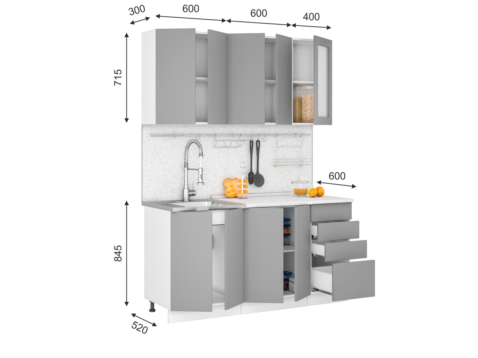 Столешница и сушка в комплект кухни не входят и приобретается дополнительно!