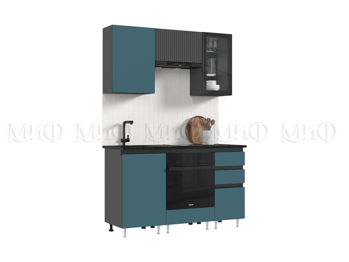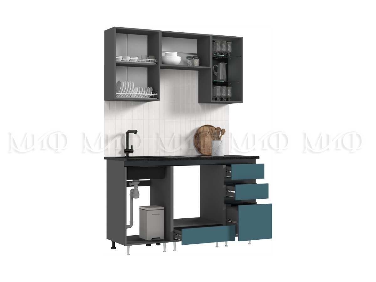 - Кухня Техно-6 1500 мм Графит/Атлантик софт