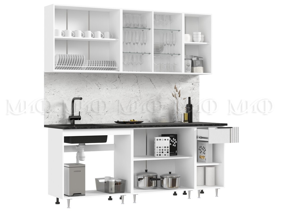 - Кухня Виктория 2000 мм Пластер Блэк/Белый (Кастилло темный)