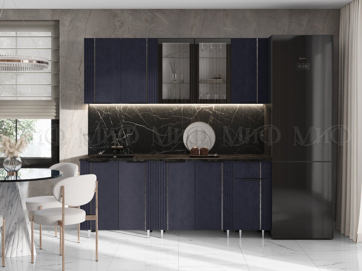 Кухня Виктория 2000 мм Пластер Индиго/Белый (Кастилло темный)