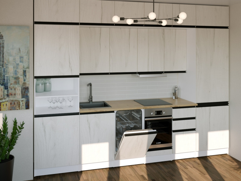 Мойка, смеситель, стеновая панель и посудосушитель в комплект гарнитура не входят.
