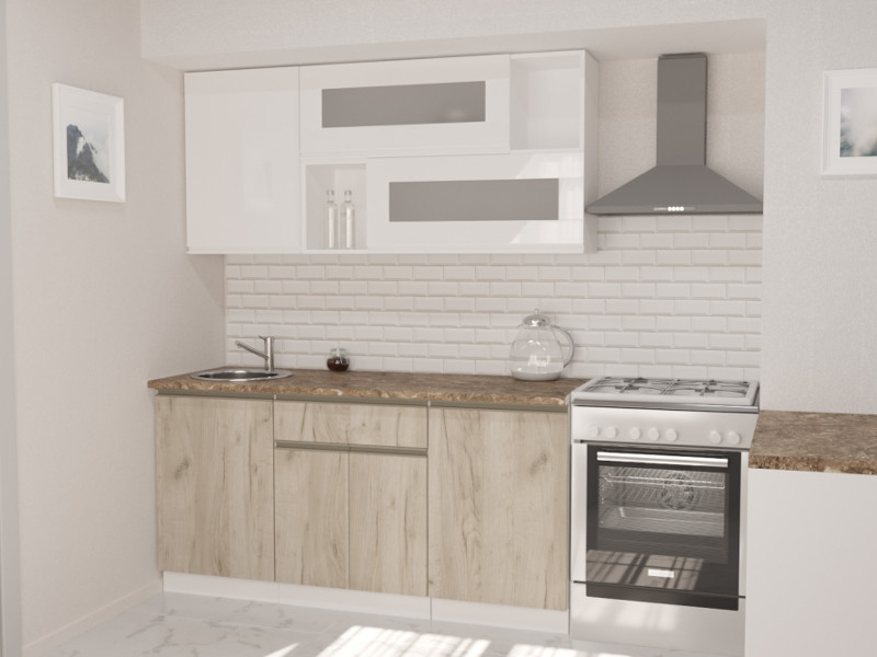 Мойки, смесители и посудосушители в комплекты гарнитуров не входят.
