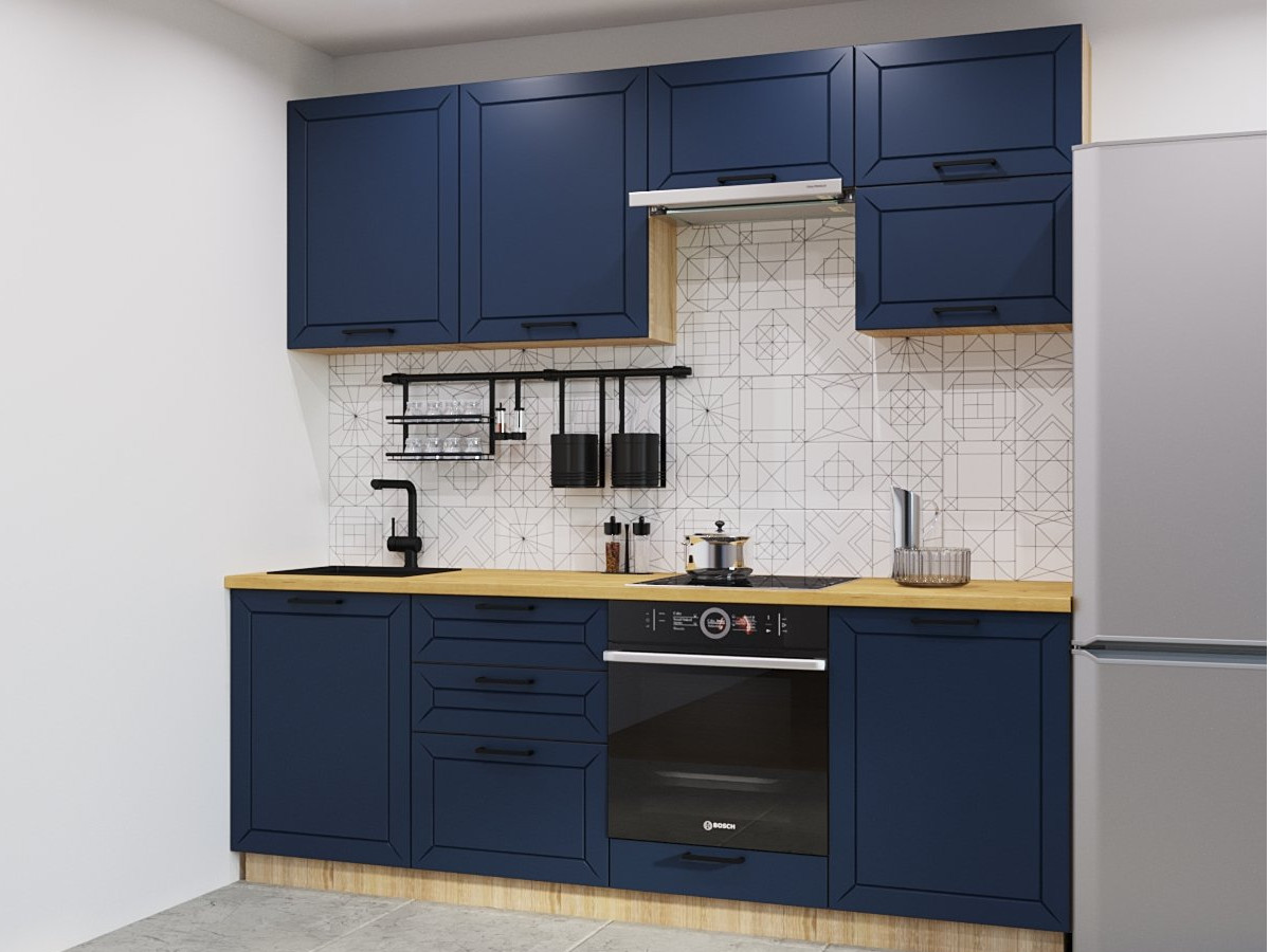 Кухонная мойка, стеновая панель, посудосушитель, планки для столешницы в комплект не входят.