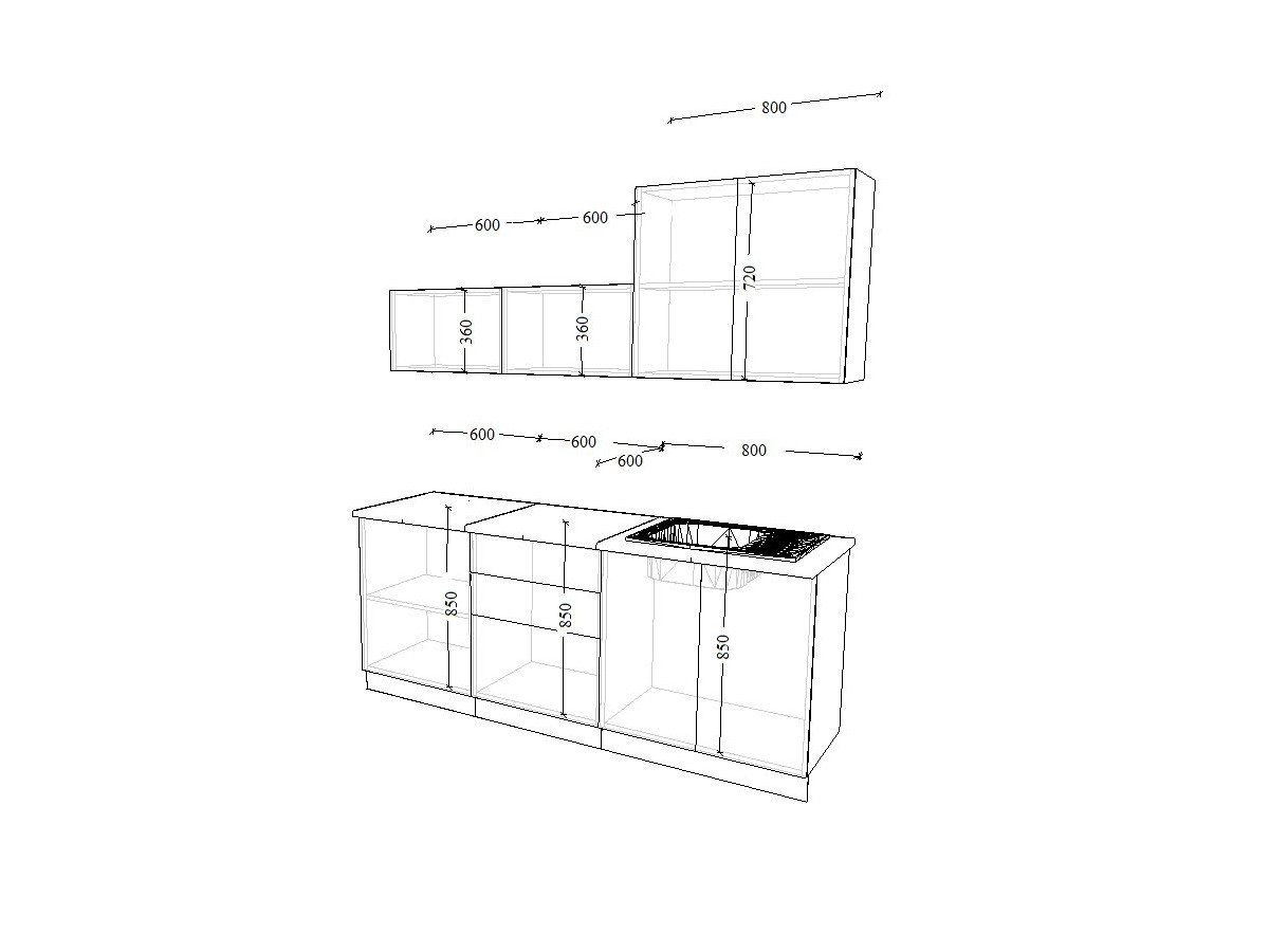 - высота верхних шкафов 720 мм